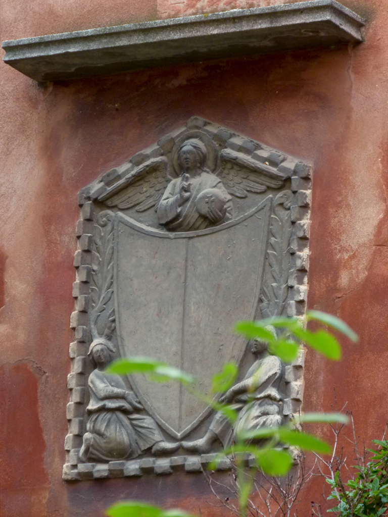 stemma gentilizio, coppia di confratelli, angelo benedicente (rilievo, opera isolata)
