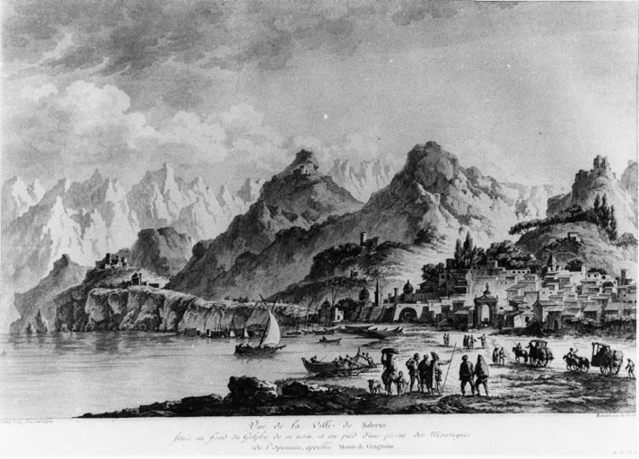 Francesco Cicciotto Caso; Francesco Cicciotto Caso, stampe - riproduzioni fotografiche; Pacichelli, Giovan Battista. La città di Salerno - stampe (positivo)