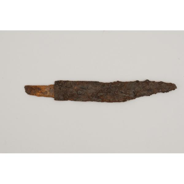 Spessa lama con dorso curvo e tagliente dritto appena curvato verso la punta. Codolo largo quasi quanto la lama, con sezione rettangolare.