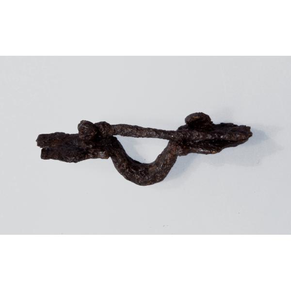 Fibula a bracci uguali di tipo classico con ardiglione orizzontale. Presenta le estremità ingrossate.