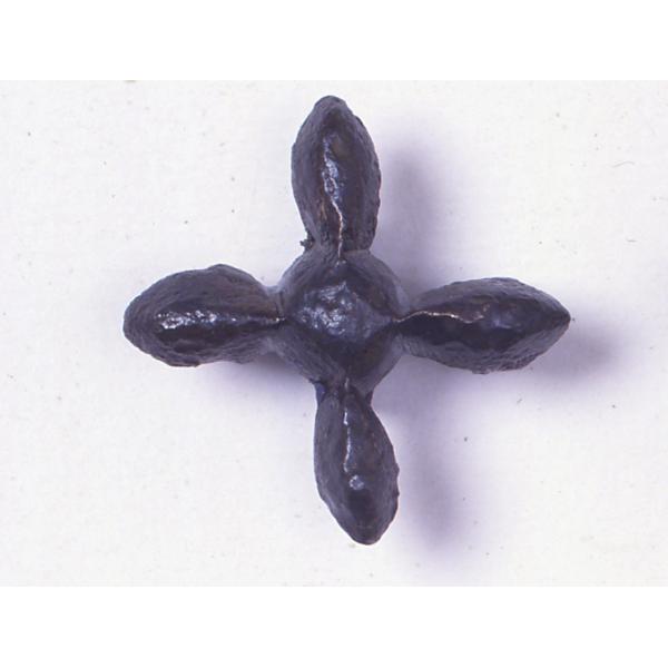 A quattro bracci nervati saldati su un bottone centrale. Occhiello di fissaggio retrostante.