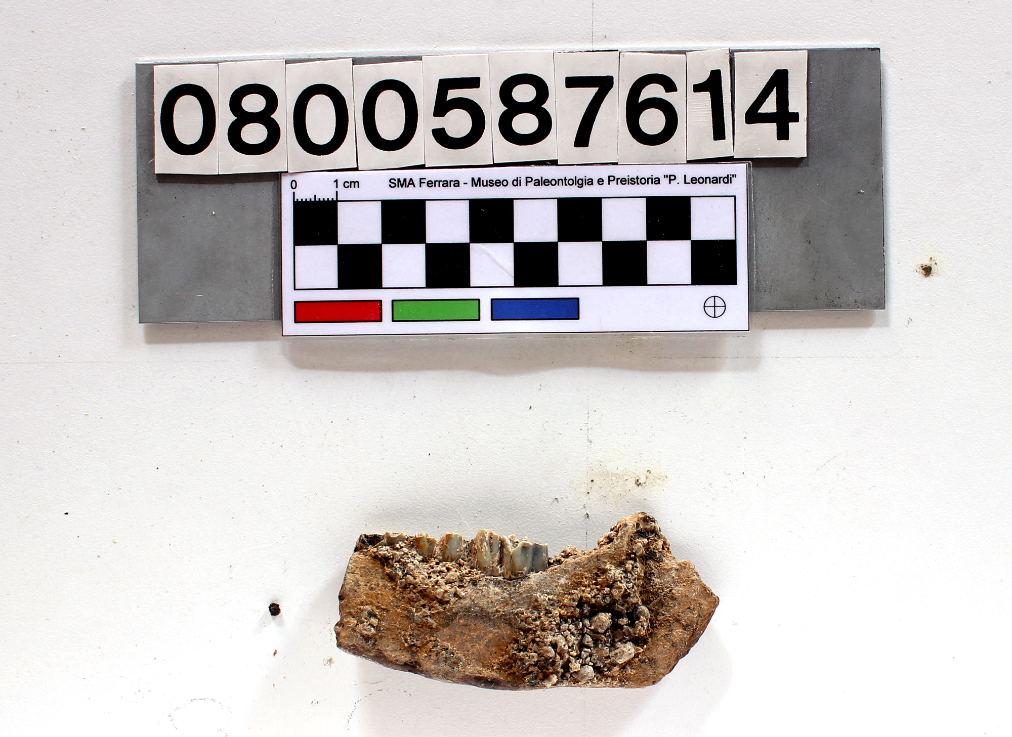 Animalia, Chordata, Mammalia, Artiodactyla, Cervidae, Axis, .frammento mandibola di Axis. località di raccolta - dati storici: Asiatico, Indonesia, Giava