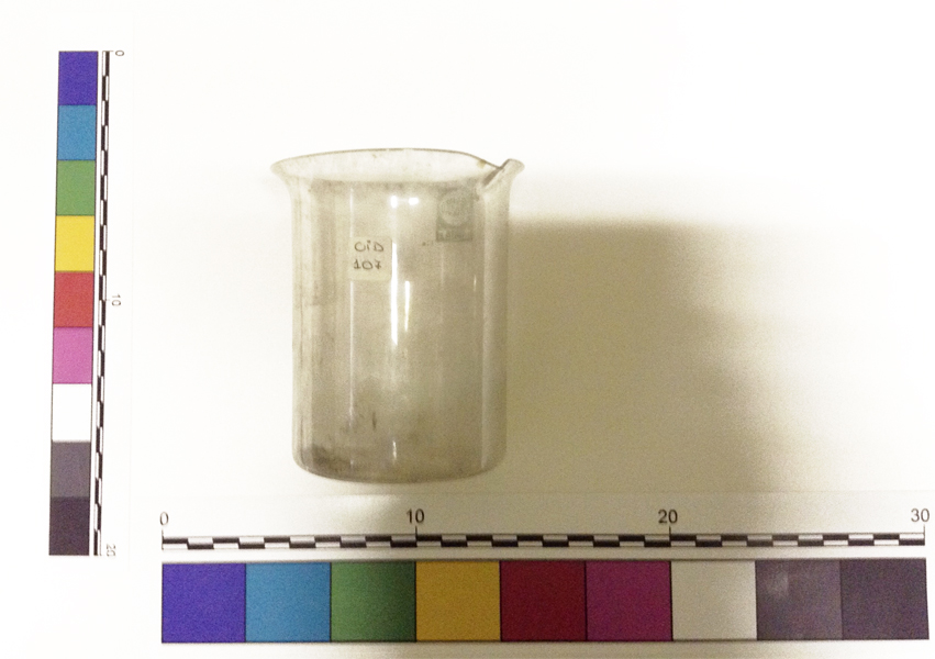 Contenitore per liquidi grande, cilindrico, con beccuccio in vetro (contenitore, Strumento medico)