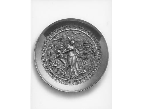 Coppa ad alzatina provvista di piede circolare e di fusto ornato da tre aquile con il collo piegato sul petto. Personificazione: Terra. Attributi: (Terra) cornucopia. Paesaggio