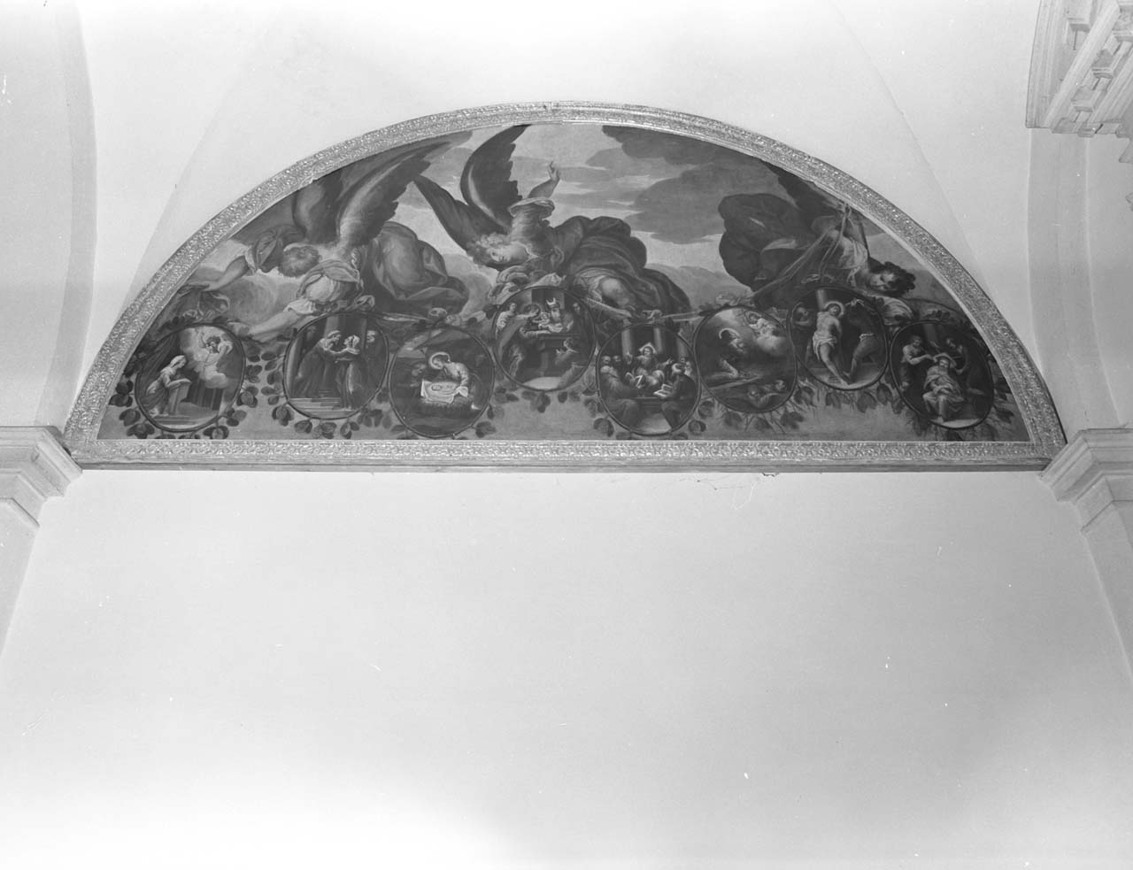 Iconografia già altre volte usata dal Bissoni, per rappresentare i misteri del rosario entro piccoli medaglioni con una cornice di foglie, appesi ad un nastro retto da tre angeli in volo. La cornice è di legno dorato (cfr. Notizie storico-critiche).. soggetto non rilevabile