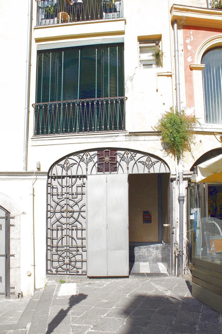 Edificio inserito di forma irregolare,composto da tre vani adiacenti. Strutture verticali in muratura non accertabile. Solai in ferro intonacati con affresco. Pavimento in mattonelle in marmo. Facciata esterna con un cancello in ferro. All'interno gessolini a ricamo, soffitto dipinto a altare in marmo