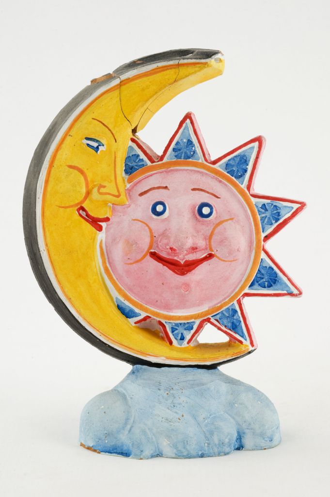 la scultura, su base sagomata, raffigura una mezzaluna e un sole con tratti antropomorfi. Il volto della luna è di profilo dipinto di giallo; il sole è incluso nel profilo lunare. Il dispositivo sonoro è celato entro il corpo della figura, l'imboccatura priva di becco si apre direttamente sull'apice della luna, nella punta.