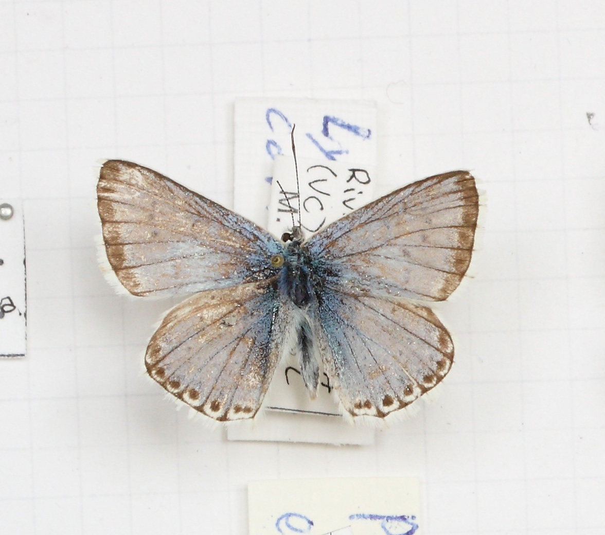 Arthropoda, Insecta, Lepidoptera, Lycaenidae (sottofamiglia: Polyommatinae), Polyommatus (sottogenere: Polyommatus), Polyommatus (Lysandra) coridon.esemplare intero. località di raccolta - dati aggiornati: Europa, Italia, Piemonte (VC)