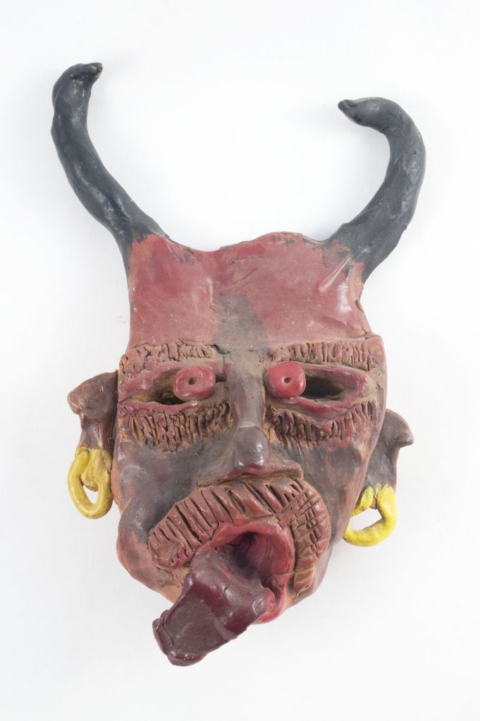 Loiotile Pasquale, figura maschile con maschera (fischietto, a fessura interna, strumenti musicali)