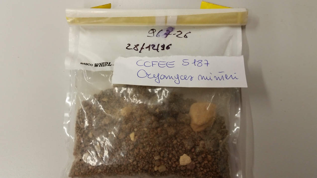 Roccia sedimentaria polverizzata con Cryomyces minteri CCFEE 5187. località di raccolta - dati aggiornati: Antartide