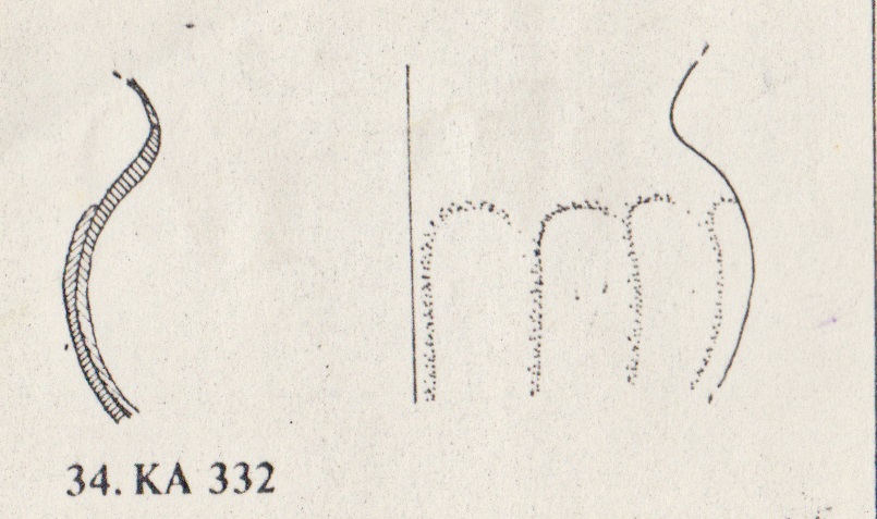 Coppa con labbro svasato e parete ingrossata. Il corpo è decorato con sottili costolature verticali. Non sono presenti i filamenti bianchi avvolti a spirale sui fianchi e sul collo, comunemente presenti su questo genere di coppe ("Zarte Rippenschale"). Vetro azzurro con striature ed iridescenze.