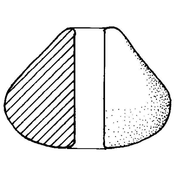 fuseruola di forma bi-troncoconica con foro pervio centrale. Ceramica d'impasto di colore bruno-arancio, granuloso e poco depurato. Produzione locale.