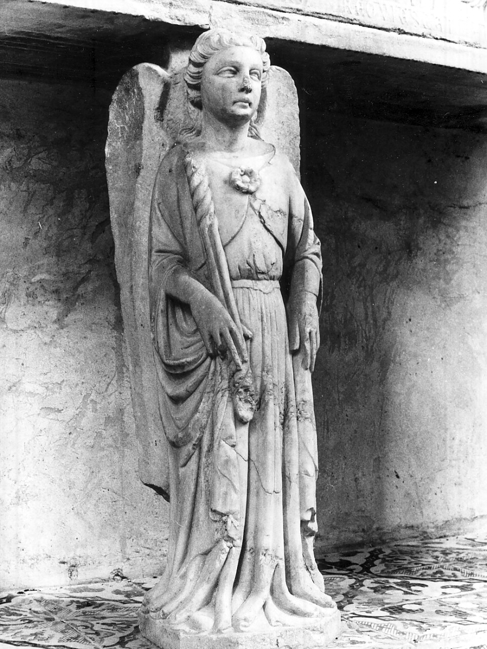 figura alata con veste fissata alla vita con una cintura; tiene in braccio un agnellino. Personificazioni: Mansuetudine. Animali: agnello