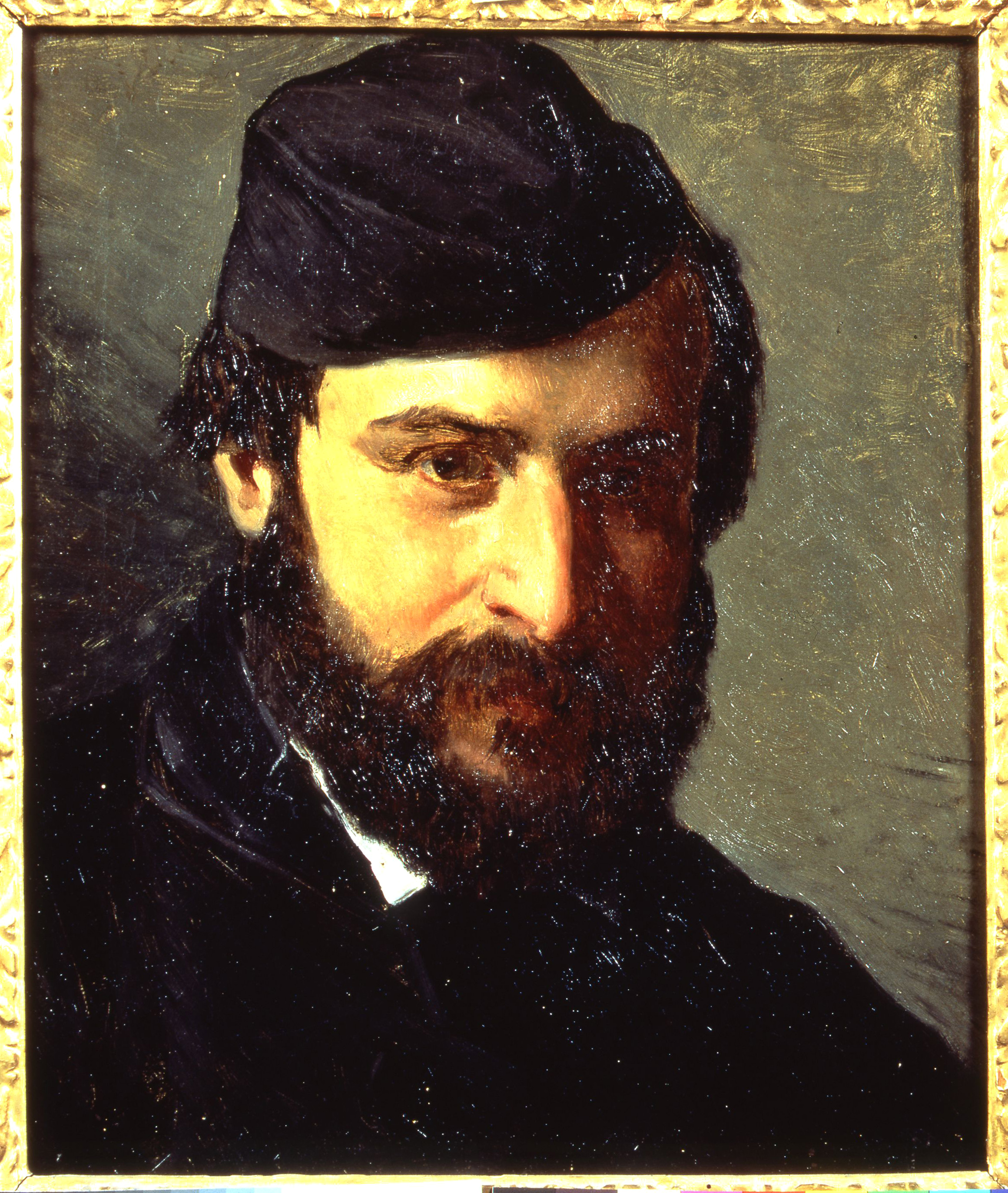 Dipinto a olio su tela con cornice in legno dorato.. Ritratti: lo scultore Pietro Cheloni