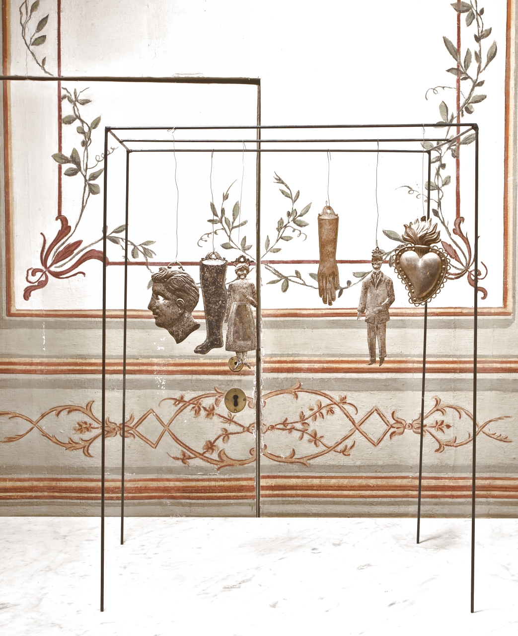 Installazione cinetica costituita da sei ex-voto: un uomo, una donna, un cuore, una gamba, una mano, una testa d'uomo sospesi ad un filo sottile posti in una camera oscura agitati leggermente da un piccolo ventilatore. Le ombre mobili ingrandite sono proiettate sulla parete