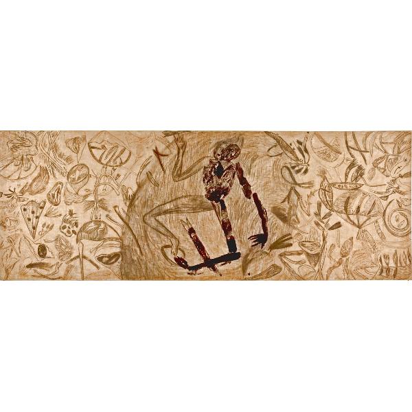 Il dipinto realizzato con tecnica mista su carta intelata è denso di vari simboli. Vi si trovano elementi religiosi come la croce, il calice, la corona di spine che alludono al sacrificio, alla rinascita ed elementi tratti dalla natura e dalle colture primitive