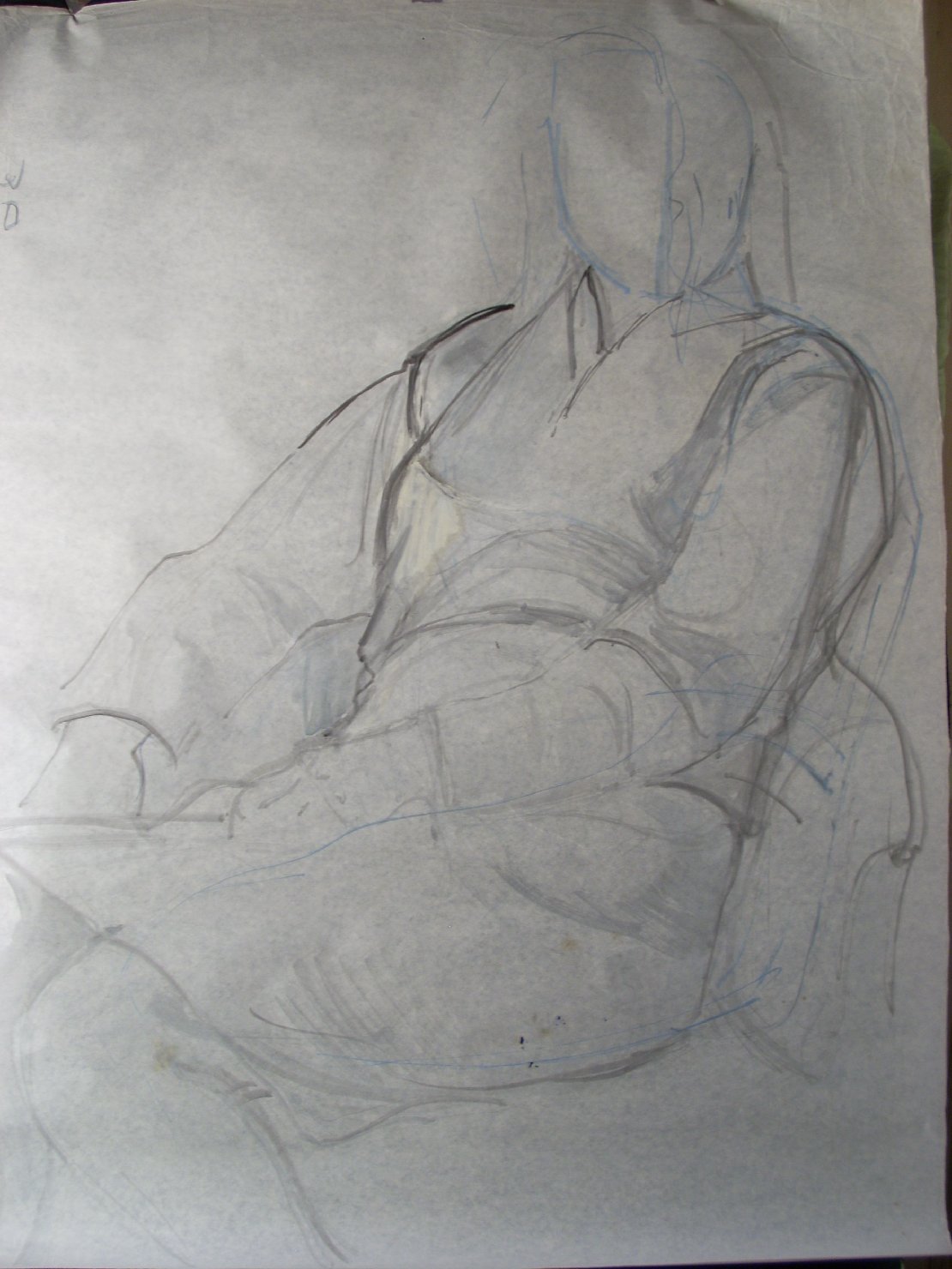 Abbozzo in grigio 2, figura femminile seduta (disegno)