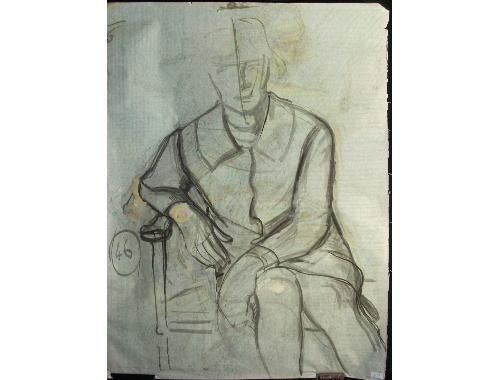 Abozzo di modella, figura femminile seduta (disegno)