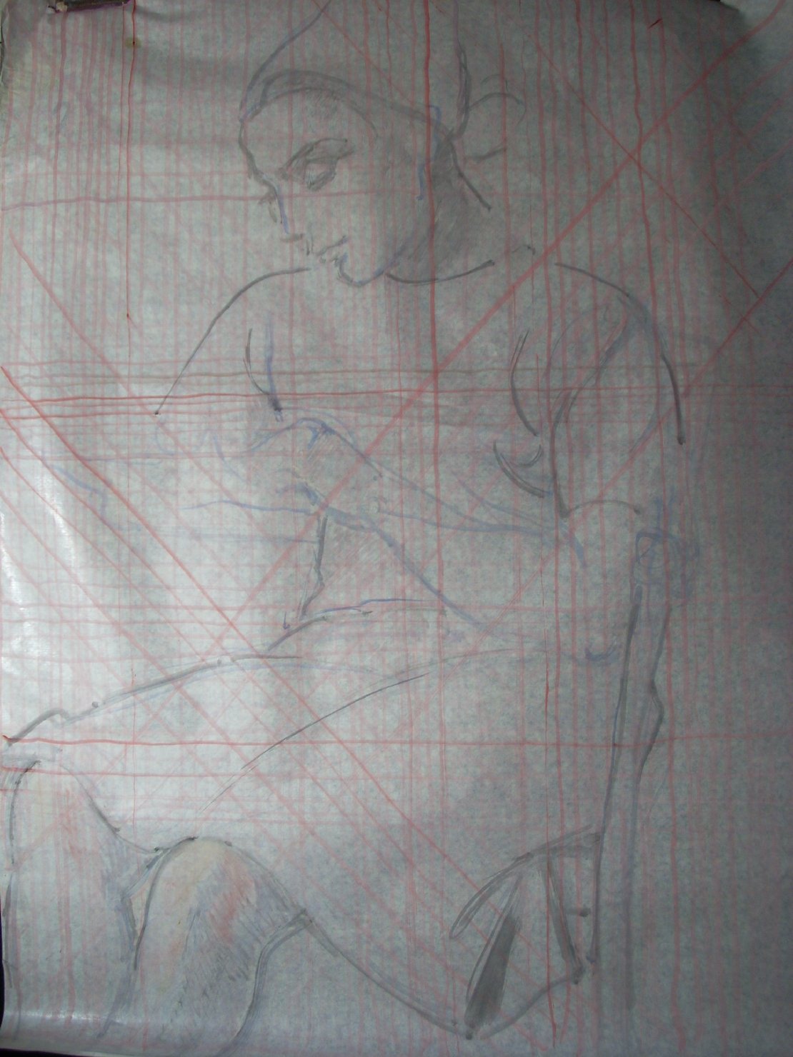 Schizzo in rosa e nero 7, figura femminile seduta (disegno)