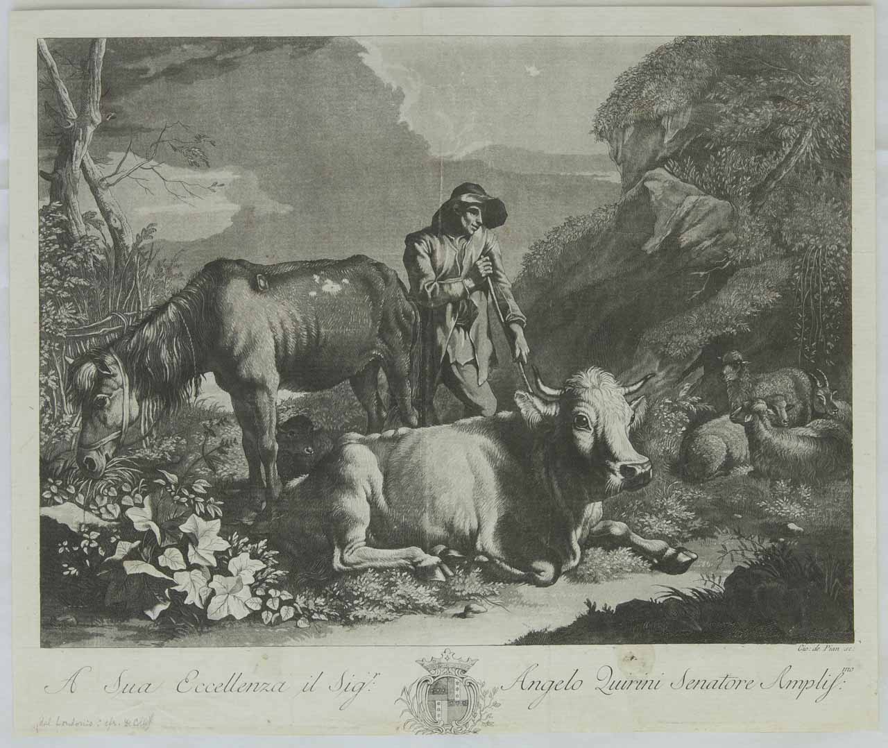 Personaggi: pastore. Animali: bovino; cavallo; capra; pecore