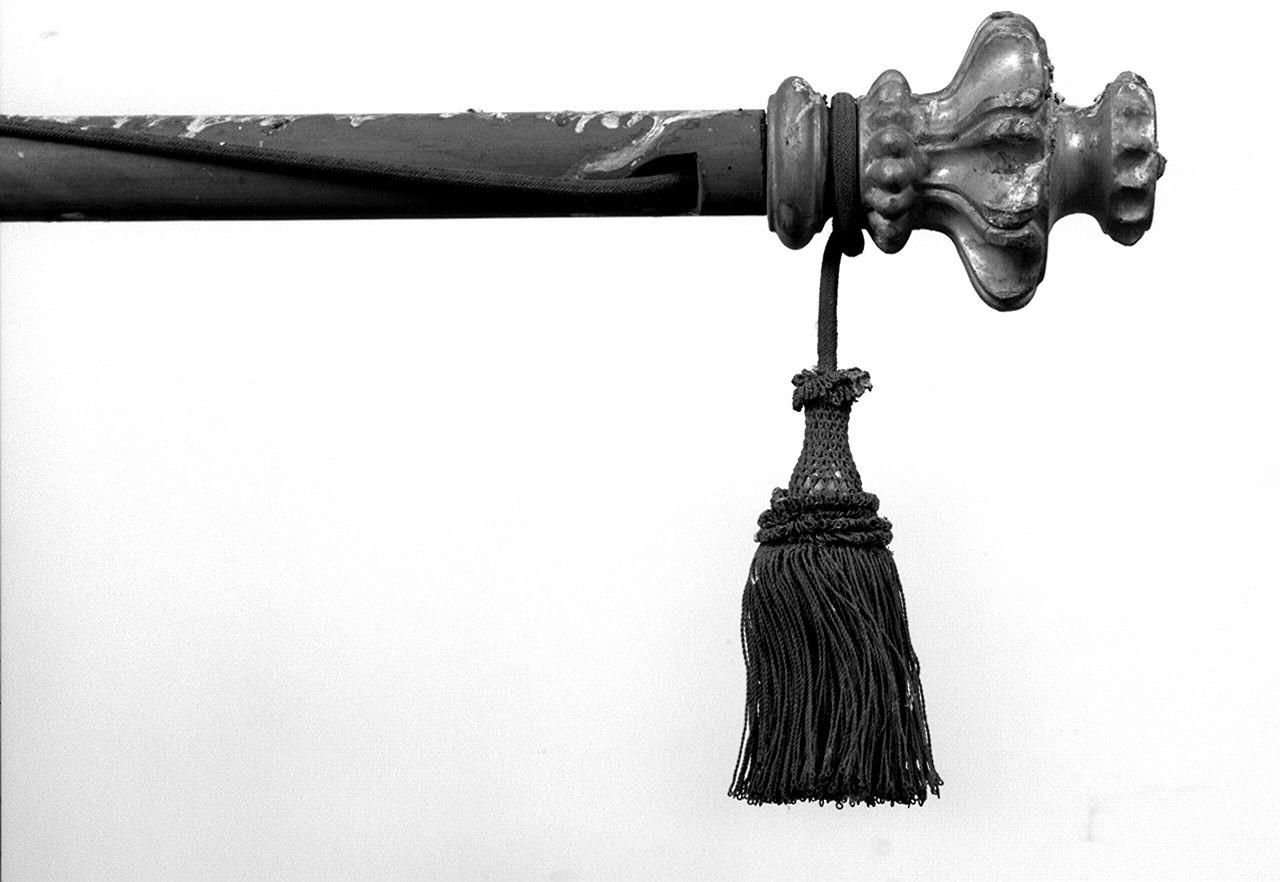 Alle estremità l'asta è arricchita da nappe in oro filato ritorto.