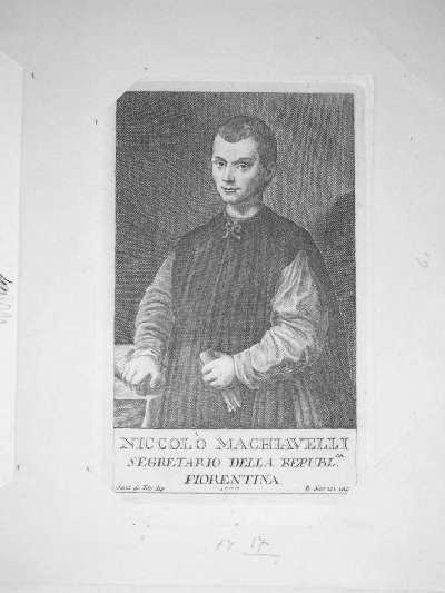 Ritratti: Nicolò Machiavelli. Oggetti: libro. Mobilia: tavolo