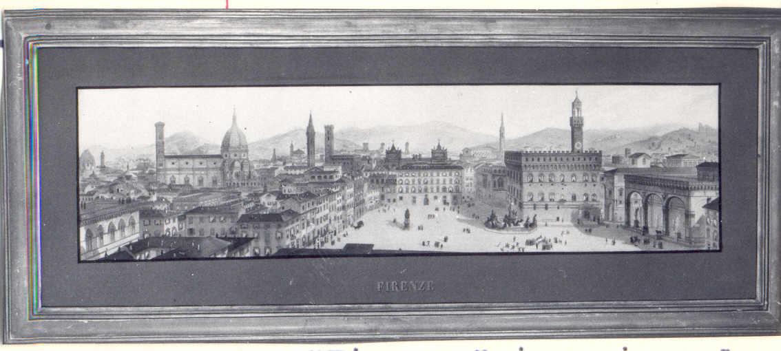 Veduta di Firenze con piazza della Signoria e Santa Maria del Fiore, Veduta di città a volo d'uccello (litografia)
