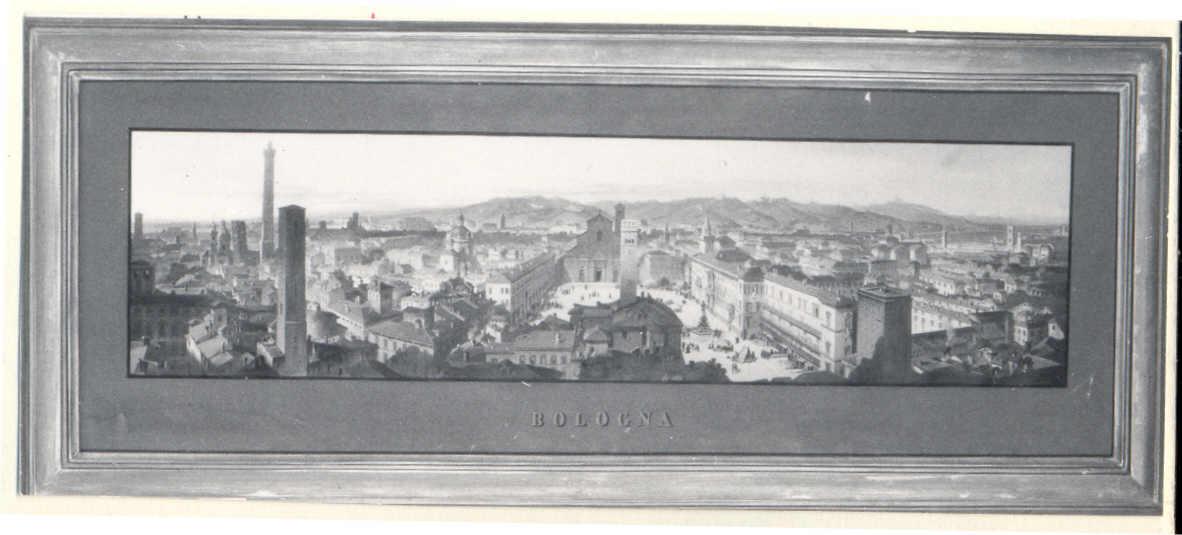 Veduta di Bologna, veduta di città a volo d'uccello (litografia)