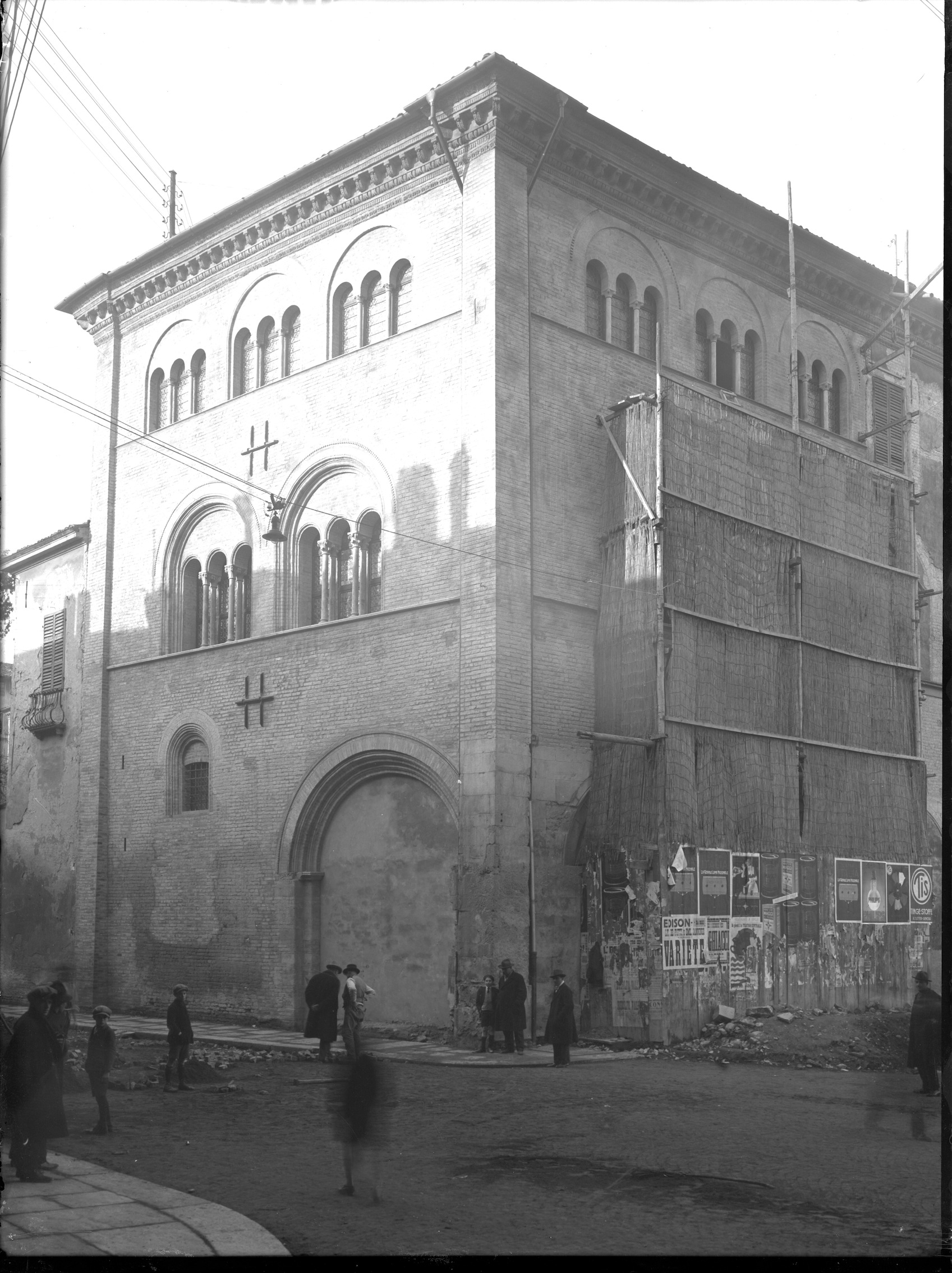 Italia - Emilia Romagna - Parma - Palazzo vescovile; Architettura - Palazzi - Sec. 13.; Palazzi - Diocesi - Restauro, Parma - Veduta del Palazzo vescovile: angolo tra Piazza Duomo e Strada Duomo, durante i restauri – Veduta animata - Ripresa effettuata nel 1926