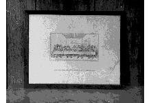 Personaggi: Cristo; Apostoli. Oggetti: tavola; calici; lampadario; ostie