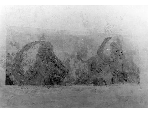 Sulla sinistra si scorge, raffigurato frontalmente, un soldato che brandisce una spada; sulla destra un cavaliere con uno strano copricapo, trattiene le briglie del cavallo e solleva una spada.