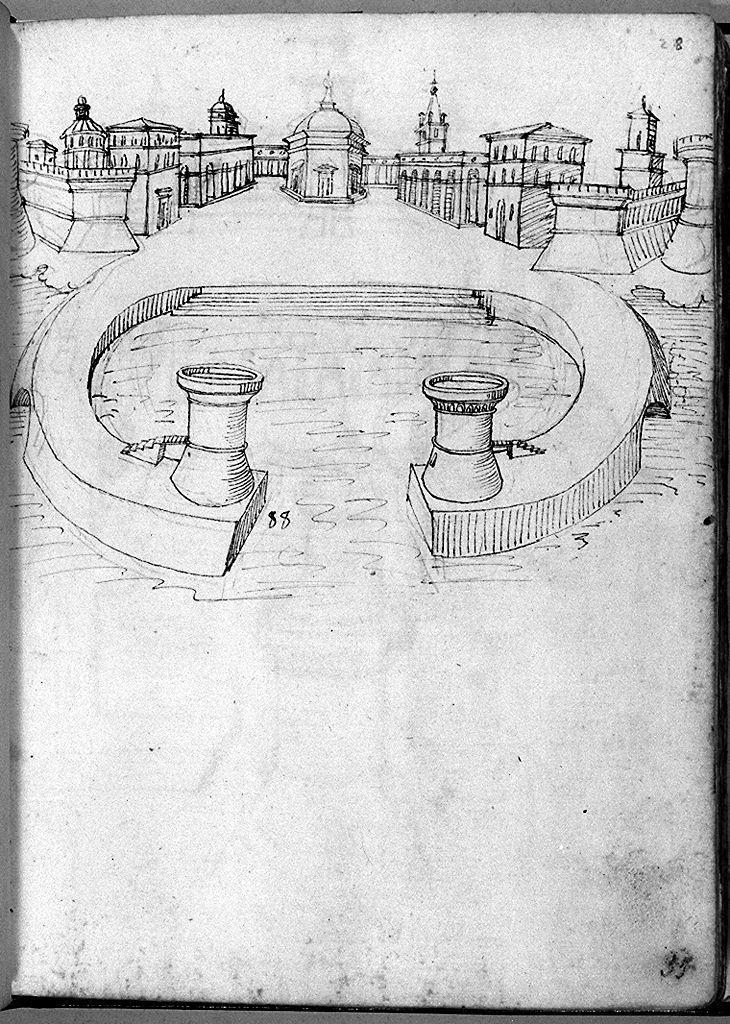 Disegno di veduta di un porto.. Architetture: porto di mare