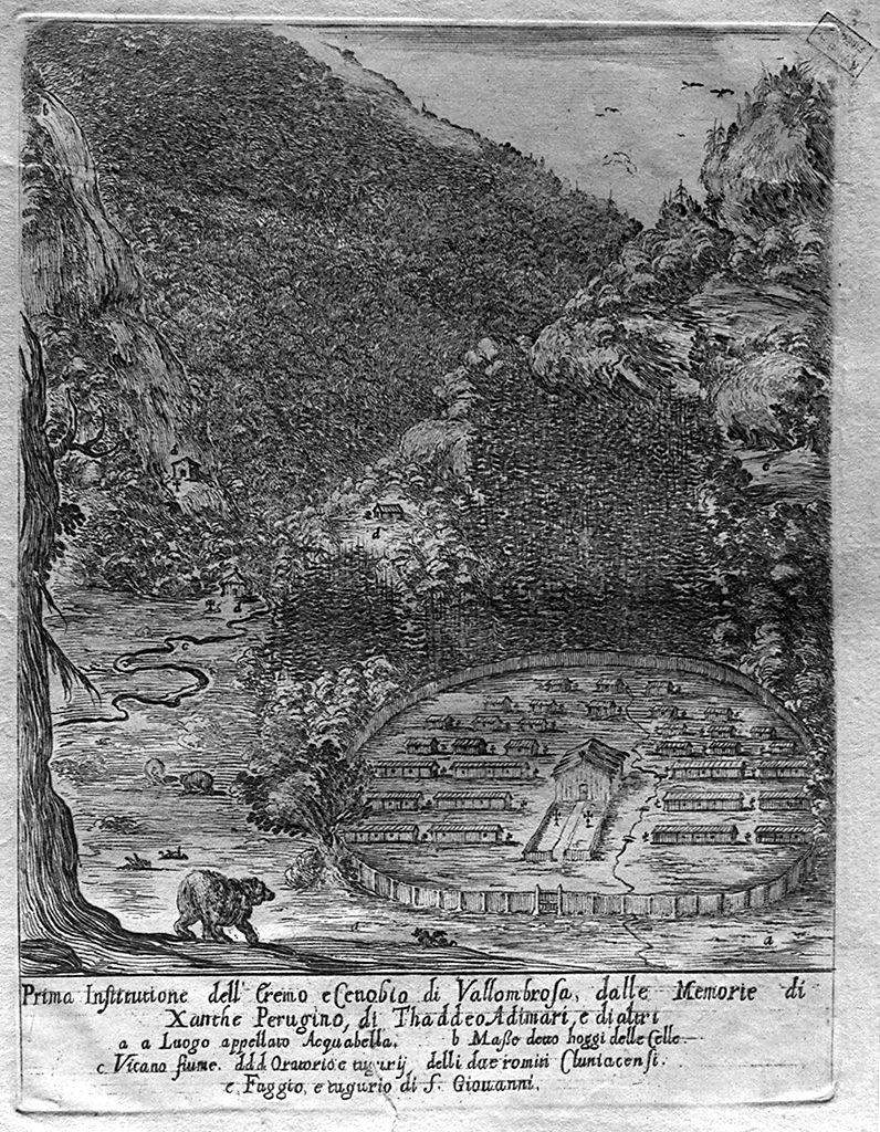 Cioci Antonio; Cioci Antonio, veduta del Monastero di Vallombrosa (stampa composita)