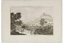 Paesaggio con viandanti in riposo e carro (stampa, serie)