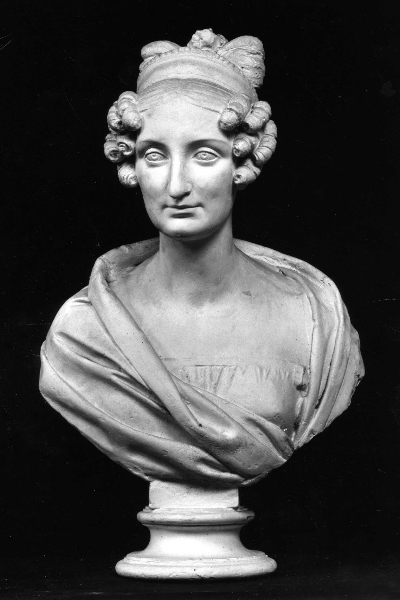 Busto a tutto tondo raffigurante una donna su peduccio modanato.. Personaggi: ignota. Oggetti: corona; mantello