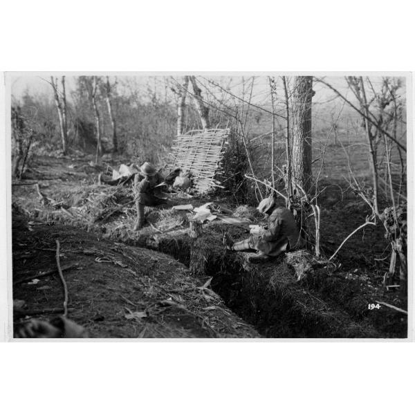 Crocetta del Montello - Grave di Ciano - soldati italiani - trincea - riposo - lettere - 1917, Crocetta del Montello, momenti di riposo per i soldati italiani che in trincea presso le grave di Ciano sul fiume Piave passano il tempo scrivendo lettere