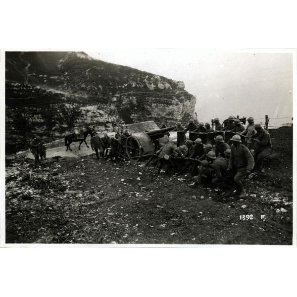 Veneto - Monte Grappa - Col Moschin - traino a mano - artiglieria - pezzi da 105 - cannoni - funi - montagne - 1918 (positivo)