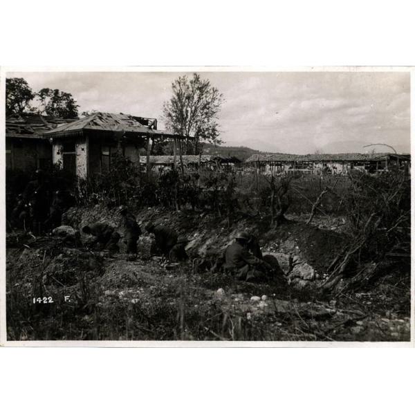 Veneto - Nervesa - trincee - reticolati - scavi - macerie - rovine - mulini - 1918, Veneto, Nervesa, costruzione di trincee dopo la nostra rioccupazione vicino a mulini