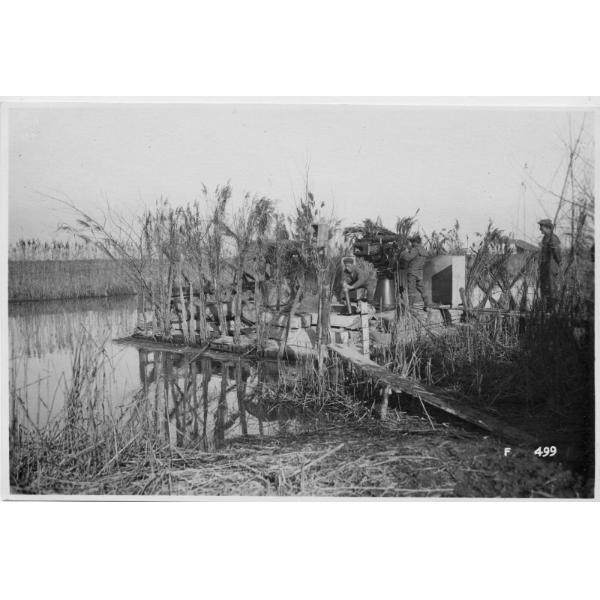 Caposile - Sile - batterie antiaeree - 1918, Caposile, batterie antiaeree da marina montate su chiatte lungo il fiume Sile