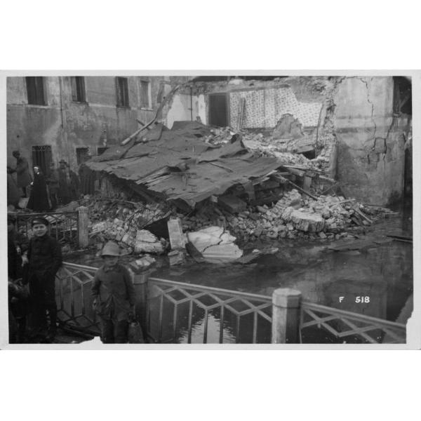 Treviso - Sile - canali - macerie - bombardamenti - incursioni aeree - 1918, Treviso, macerie di edifici dopo i bombardamenti dell'incursione aerea nemica