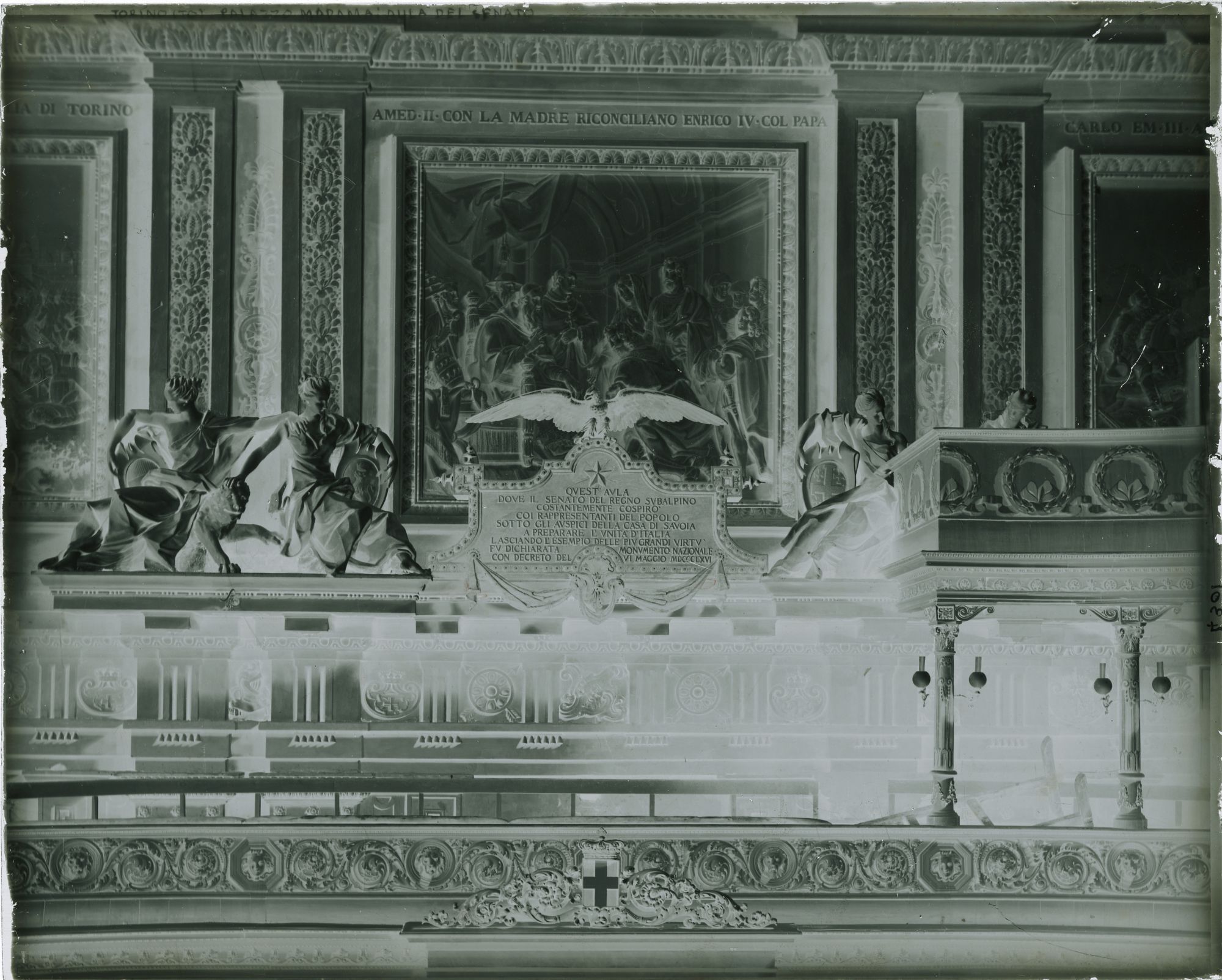 Ufficio Regionale per la Conservazione dei Monumenti del Piemonte e della Liguria, Piemonte - Architetture - Elementi architettonici - Opere d'arte - Sculture; Torino - Palazzo Madama - Aula del Senato (negativo)