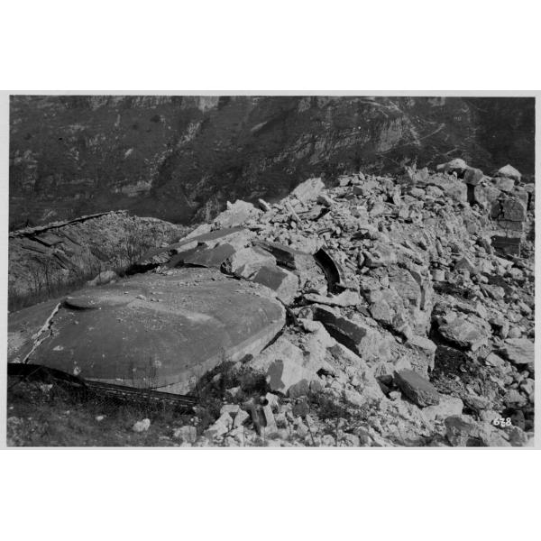 Val d'Astico - Forte Ratti - macerie - 1918, Val d'Astico, rovine del Forte Ratti fatto saltare dai soldati italiani durante l'offensiva austriaca del maggio 1916