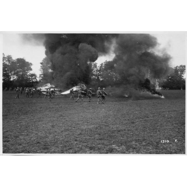 Veneto - Marostica - Nole - premiazioni - 1° divisione - arditi - lanciafiamme - sfilata - fuoco - re - 1918, Veneto, Marostica, sfilata di arditi con lanciafiamme alla presenza di S.M. re Vittorio Emanuele III