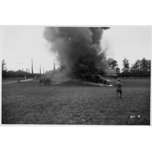 Veneto - Marostica - Nole - premiazioni - sfilata - 1° divisione - arditi - lanciafiamme - fuoco - re - 1918, Veneto, Marostica, al campo di Nole premiazione della 1° divisione arditi con lanciafiamme alla presenza di S.M. re Vittorio Emanuele III