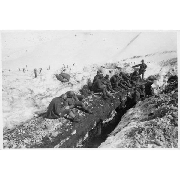 Monte Coston - riposi - camminamenti - 1918, Monte Coston, momenti di riposo dei soldati dopo la costruzione di un camminamento