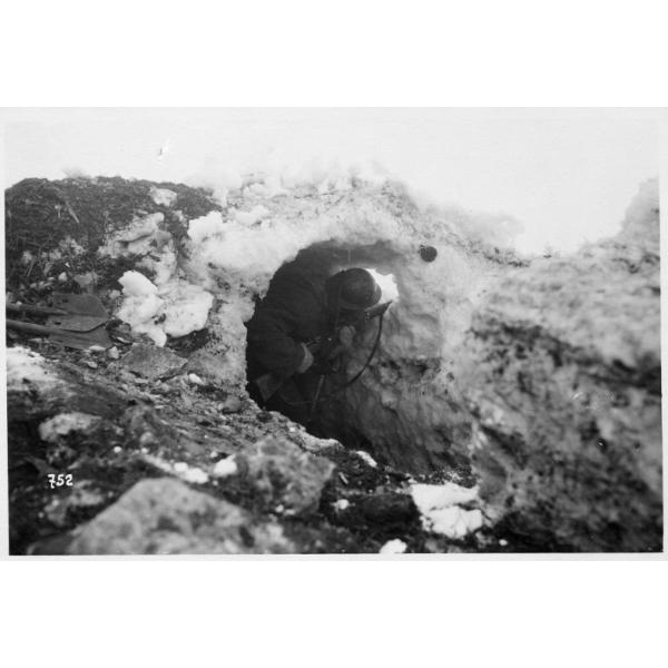 Monte Pertica - vedette - prime linee - 1918, Monte Pertica, vedetta in prima linea sotto la neve
