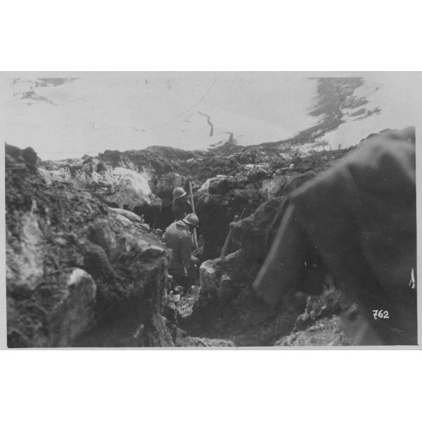 Monte Pertica - ricoveri - sacchi, Monte Pertica, soldati riempiono sacchi di terra per preparare i ricoveri
