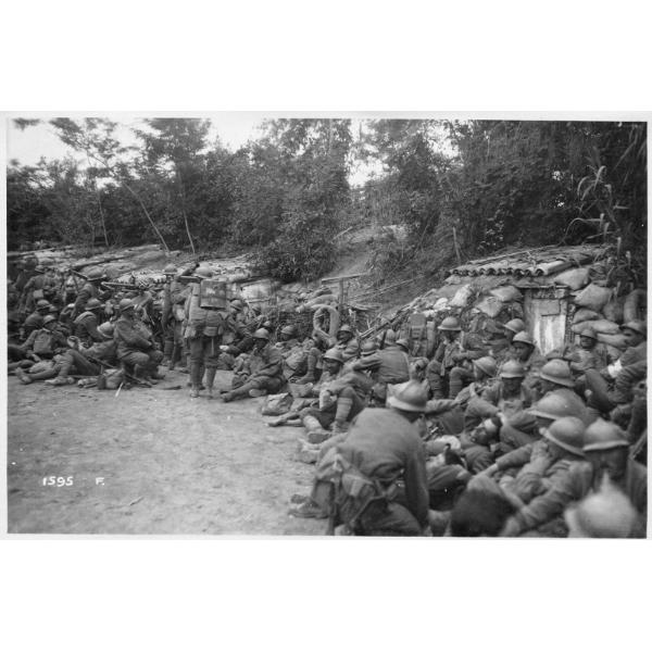 Veneto - Caposile - truppe - armi da fuoco - 1918, Veneto, Caposile, truppe riposano a terra in attesa di portarsi in prima linea