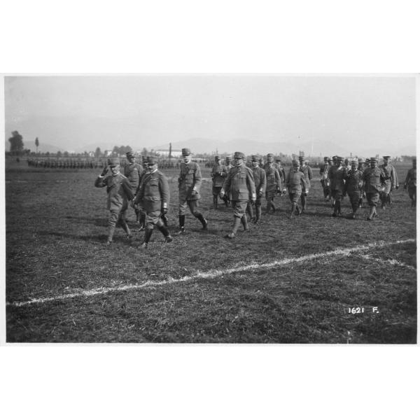 Veneto - Marostica - campo di Nole - truppe - ufficiali - premiazioni - re - 1918 (positivo)