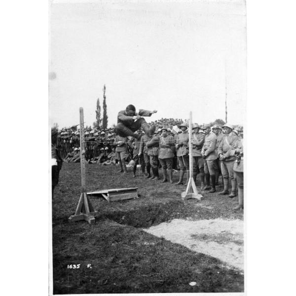 Veneto - Treviso - festeggiamenti - Brigata Veneto - esercizi ginnici - soldati - 1918, Veneto, Treviso, festeggiamenti per la Brigata Veneto, giochi ginnici di salto per i soldati